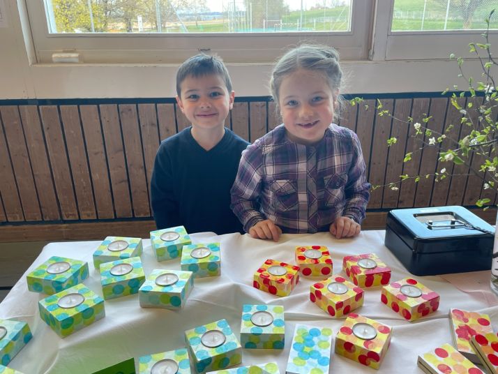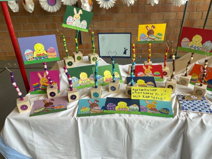 Dem Marktabend gingen fünf intensive Vorbereitungswochen voraus. In den sechs Cycle-Wochenlektionen, einigen TTG/BG-Stunden und während der Kindergartenzeit wurde fleissig, mit viel Ausdauer und Freude ausgeschnitten, gefilzt, geschliffen, gemalt, geklebt, gebacken, dekoriert, gezeichnet, gepflanzt, gefaltet, gebügelt, aufgefädelt, genäht und Zweige gebunden. So hatten die sehr zahlreichen Marktbesucherinnen und Marktbesucher eine grosse und bunte Auswahl und die Kinder verkauften mit Stolz ihre wunderschönen Werke.
